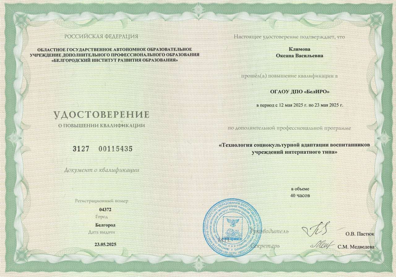 Воспитатель Климова Оксана Васильевна