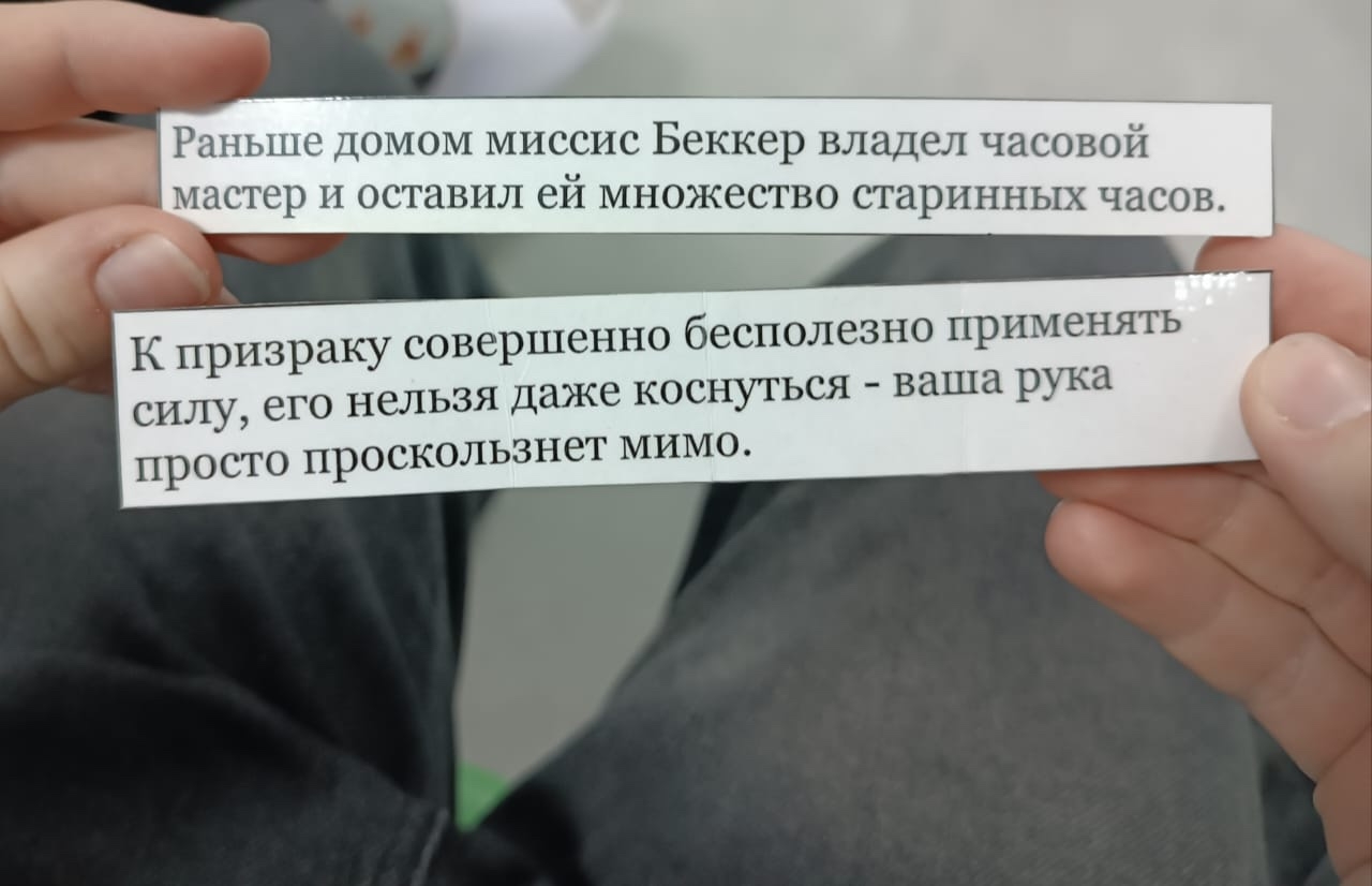 Во второй комнате ребята столкнулись с уникальной возможностью восстановить ход событий, основываясь исключительно на фрагаментарных воспоминаниях персонажей. Перед ними лежали специально подготовленные карточки, содержавшие отрывочные фрагменты историй. Для достижения успеха необходимо было выстроить полную картину произошедшего, воссоздав хронологию событий.