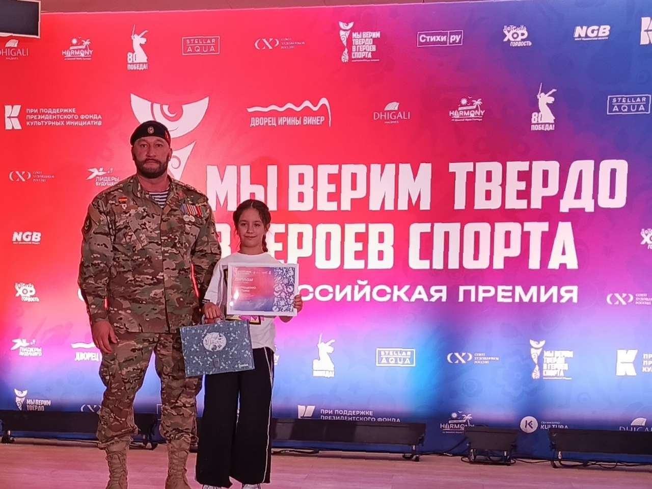 10 декабря во дворце Ирины Винер в торжественной обстановке состоялось награждение победителей III Всероссийской премии "Мы верим твердо в героев спорта", которая объединила спорт и искусство. Главная тема этого года- истории героев, которые проявили себя не только на спортивных аренах, но и в защите нашей Родины. Ангелина стала лауреатом