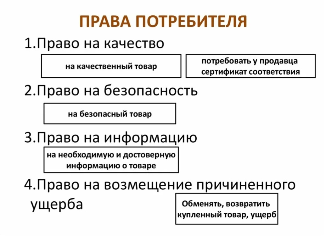 Какие основные права есть у покупателя? На качество, безопасность, информацию и многое другое.